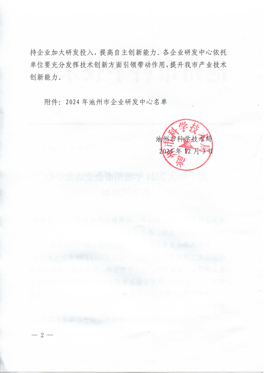 喜訊 | 安徽中科安和獲池州市企業(yè)研發(fā)中心稱號